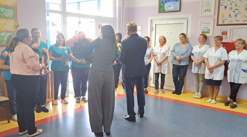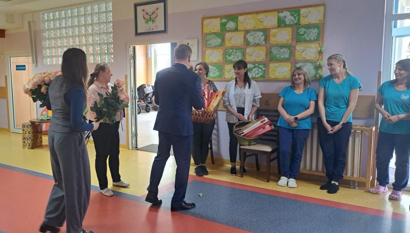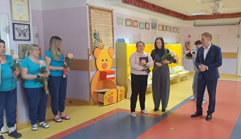 Z tej okazji Bogdan Kiełbasiński - Prezydent Miasta Legionowo odwiedził nasz Żłobek Miejski Motylkowy Świat, gdzie wręczył kwiaty i złożył serdeczne podziękowania wszystkim Opiekunkom.